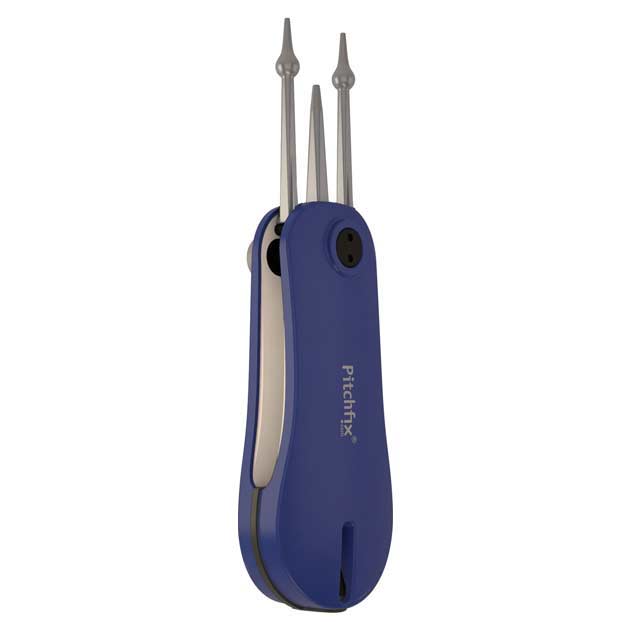 The name of the product says it all. With the Fusion line we have managed to combine the characteristics of the successful Hybrid line with the award winning pin technology of the Twister 2.0. This is without doubt the best divot repair tool Pitchfix has ever produced. ABS handles that are rubberized for the soft touch and grip, colored aluminum trims, shiny painted button trims, black pins and buttons and an integrated pencil sharpener give you another great and stylish product.